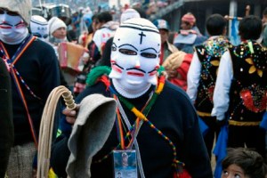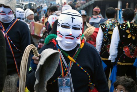 Sus danzas son muchas veces matizadas con actos de penitencia, como el de caminar de rodillas sobre la nieve.