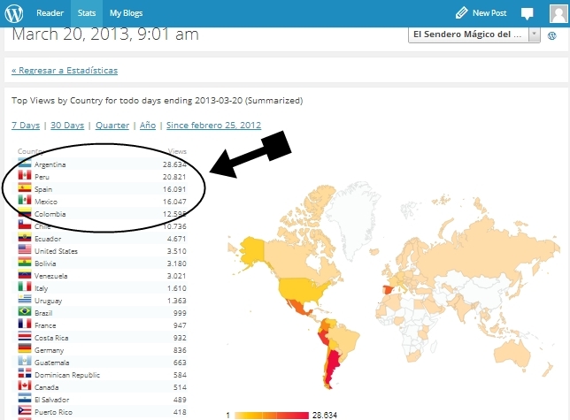 Estas son las PREFENCIAS del sitio web en el último año, nuestro peculiar TOP TEN de visitantes por países: