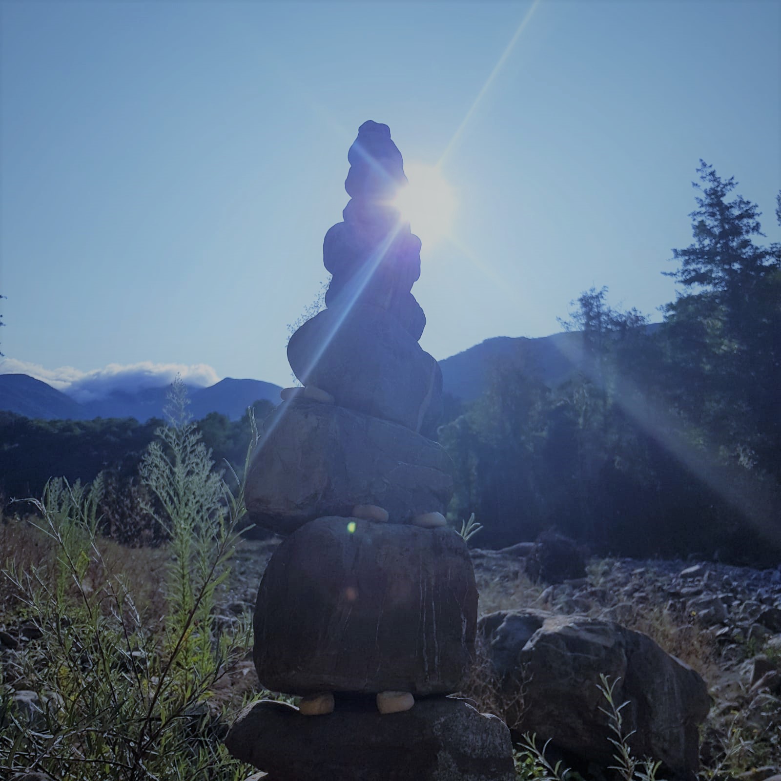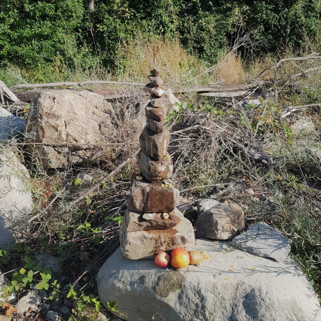 Con motivo del retiro de mi escuela de psicoterapia, decidí realizar una «apacheta» o «saywa» en el río «Stora» de este sector denominado Teviggio entre las montañas apeninas de la Spezia Ligure. Realizar este tipo de ofrendas no requiere de mayores cosas que de voluntad y una firme conexión interior con la tierra que a uno le acoge. De este modo descendí al río -que en la época del mes de agosto- presenta un caudal muy bajo y elegí una ribera casi al nivel de la corriente, a sabiendas que la crecida del caudal se llevaría todo a su paso. Hay que recordar que en el mundo andino se aplica el concepto de impermanencia, que las cosas son solo de paso y nada dura mucho tiempo mientras que cumple su ciclo. Con esta intención me dispuse a realizar el ritual con la única compañía del padre Sol, de un fresco viento matutino y del constante sonido que produce el río cuando fluye entre las rocas.
