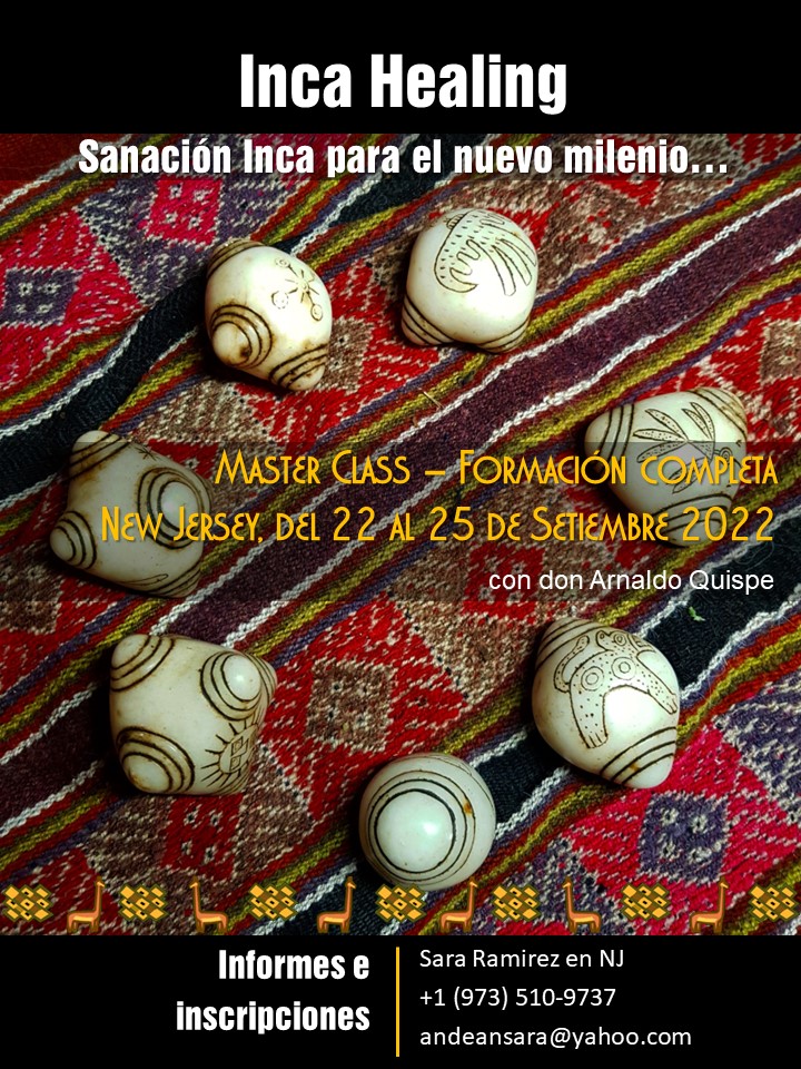 Seminario de formación en el método de sanación INCA HEALING. Este evento se ofrecerá en sus tres niveles de enseñanza-aprendizaje, desde el nivel de iniciación hasta alcanzar el curso avanzado relacionado con el ejercicio de la maestría.