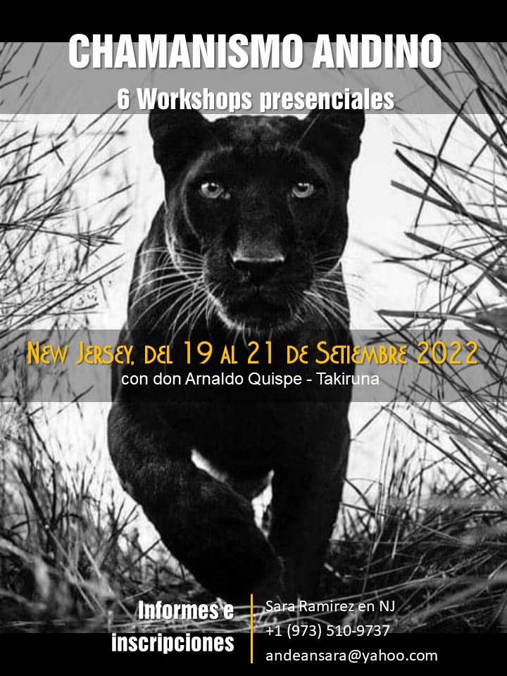 Workshop de CHAMANISMO ANDINO. En este caso corresponde a 6 talleres prácticos presentados a modo de actualización con una metodología experiencial. Con los talleres se intenta empoderar a los participantes a fin que cuenten con las herramientas necesarias y saber qué hacer y cómo afrontar situaciones específicas de la vida cotidiana.