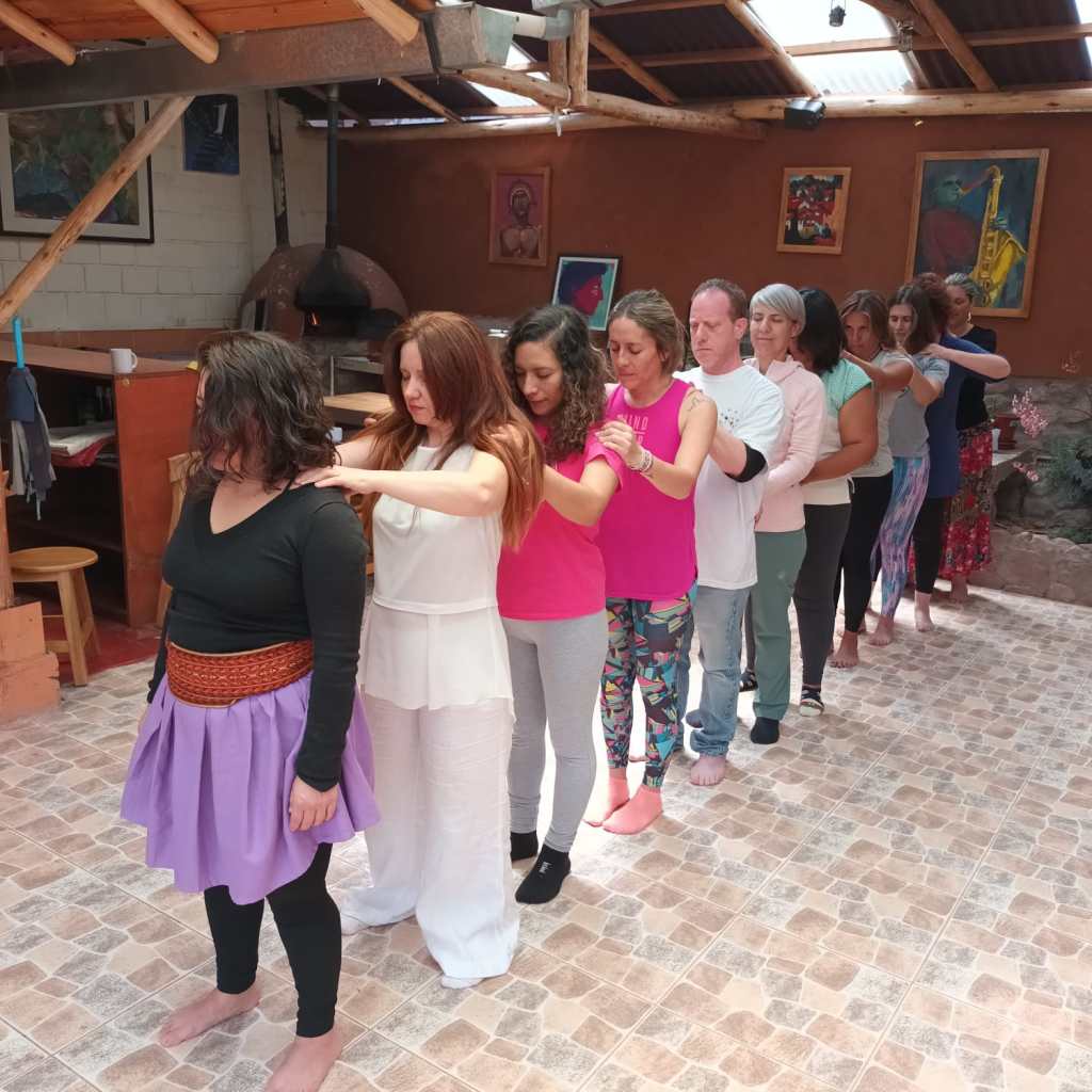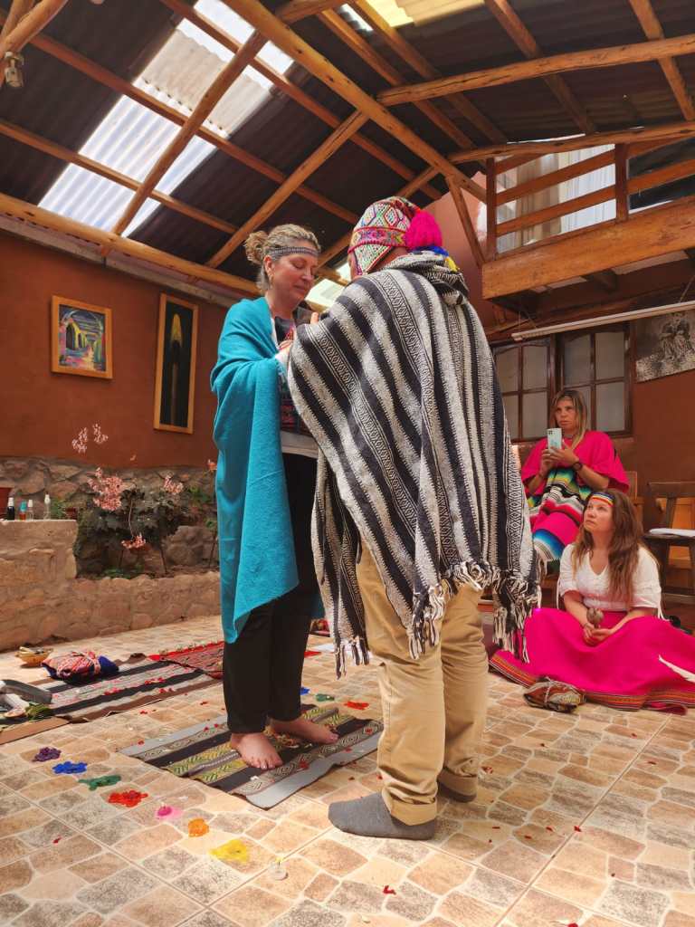 El viaje femenino de Ñusta Karpay se compone de múltiples aristas entre ellas el contacto con un mundo milenario impregnado de espiritualidad, de valores culturales y étnicos que conservan la memoria de los tiempos, de seres de luz que en nuestro pasado circular hoy forman parte del modelo amplio de arquetipos del inconsciente colectivo universal. El viaje se inicia en la mayoría de los casos con un llamado, con un fuerte impulso a emprender y caminar en un contexto nuevo. Cuando se aclaran las inquietudes y nace la decisión de participar las energías se movilizan en aras de una consecuente organización personal. Todo apunta a lograr el desafío de formar parte de un nuevo grupo humano. Cuando el retiro se inicia entran en juego las dinámicas de relación y poco a poco los participantes se van conociendo y abriendo la posibilidad de una mayor sintonia relacional, esto sin renunciar a la idea de ser uno mismo. Las primeras respuestas de desfase en la sincronía humana llegan cuando se pone en evidencia la propia autenticidad personal, esto permite reflejarse en el otro y abrir paso a una zona de conflicto de lo que a veces no queremos aceptar en nosotros mismos, aquí ayuda mucho las dinámicas, pruebas y ritos de paso. Estos tienen la facultad de mover, de estirar, de desenmascarar, de limpiar y buscar un nuevo órden útil para acrecentar el estado de consciencia.