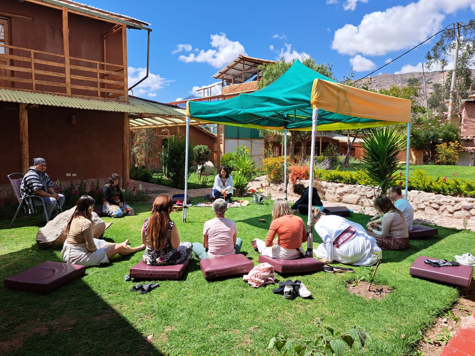 El viaje femenino de Ñusta Karpay se compone de múltiples aristas entre ellas el contacto con un mundo milenario impregnado de espiritualidad, de valores culturales y étnicos que conservan la memoria de los tiempos, de seres de luz que en nuestro pasado circular hoy forman parte del modelo amplio de arquetipos del inconsciente colectivo universal. El viaje se inicia en la mayoría de los casos con un llamado, con un fuerte impulso a emprender y caminar en un contexto nuevo. Cuando se aclaran las inquietudes y nace la decisión de participar las energías se movilizan en aras de una consecuente organización personal. Todo apunta a lograr el desafío de formar parte de un nuevo grupo humano. Cuando el retiro se inicia entran en juego las dinámicas de relación y poco a poco los participantes se van conociendo y abriendo la posibilidad de una mayor sintonia relacional, esto sin renunciar a la idea de ser uno mismo. Las primeras respuestas de desfase en la sincronía humana llegan cuando se pone en evidencia la propia autenticidad personal, esto permite reflejarse en el otro y abrir paso a una zona de conflicto de lo que a veces no queremos aceptar en nosotros mismos, aquí ayuda mucho las dinámicas, pruebas y ritos de paso. Estos tienen la facultad de mover, de estirar, de desenmascarar, de limpiar y buscar un nuevo órden útil para acrecentar el estado de consciencia.